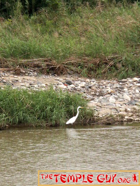 ...and a heron walking the banks. For a long time--kilometers, it seemed--any time I got close, he flew farther up river. Finally, the road was far enough away that he didn't feel threatened, and I got this shot with my lens "doubler."